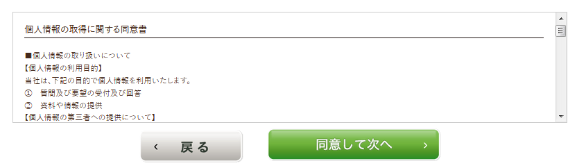 つぎのような「同意ボタン」が下の方にありますので、それを押して注文確認のページに移動していけば、注文が完了できます。