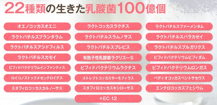 さらに、22種類の乳酸菌(100億個)が入っています。
