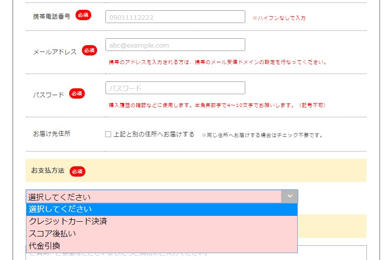 スコア後払いか代金引換も選べますので好きな方を選びましょう。