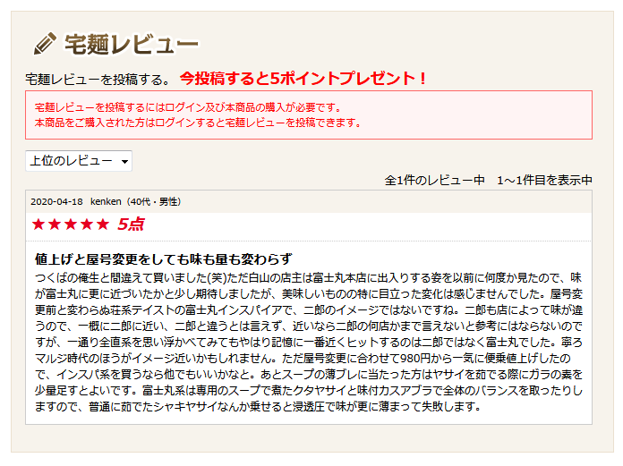 まだここのラーメン屋さんが宅麺に出品したばかりの場合も評価は少ないです。